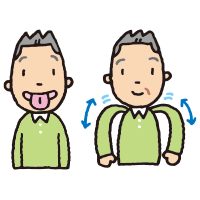 息を吸いながら肩を引き上げて、スッと力を抜くように息を吐きながら肩を下げます。お口の体操