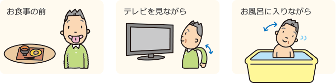 また、「テレビを見ながら」や「お風呂に入りながら」など、何かをしながら嚥下体操を取り入れるのもよい方法です。