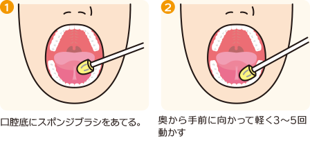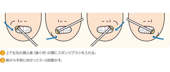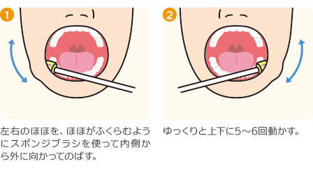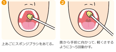 お口の中のストレッチは、粘膜のケアをする際に使う「スポンジブラシ」などを用いて行います。