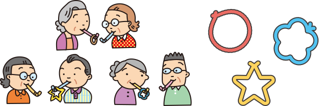 口腔機能訓練にもレクリエーションの要素を取り入れると、楽しくトレーニングができます。楽しさは継続してトレーニングをするための大切な要素です。