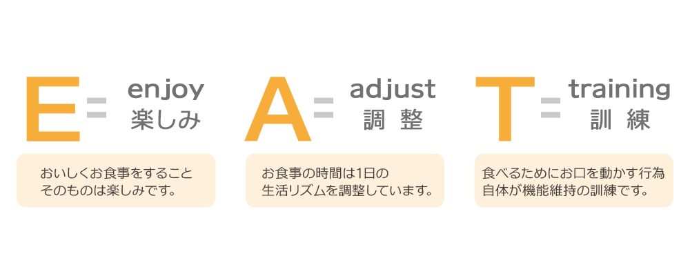 味わう、食感、見た目で食欲がわき「おいしく楽しむ」というプロセスすべてが「食べる」ということです。