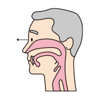 お口の4大機能のうち「食べる」と「呼吸する」があります。食べものを飲み込むときには、食道だけに食べものが入るように、気管を一瞬閉じる必要があります。そのため、息を一度止めることができないと、食べものをスムーズに飲み込むことができません。