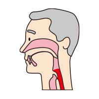 食べもののかたまりが、のどから食道へと送られるのは一瞬の出来事です。のどに入ったかたまりは、軟口蓋と咽頭蓋(こうとうがい:飲み込む瞬間に気管にフタをするためのドア)が閉じられたタイミングで食道へと送り込まれます。