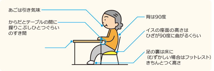 食事の際には、楽に、おいしく、そして安全に食べられるように、正しい姿勢を整えることがとても大切です。
