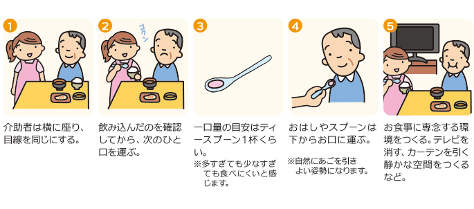 誤嚥しにくい姿勢で食事をすることで、誤嚥の危険を減らし、より安全に食事を楽しむことができます。